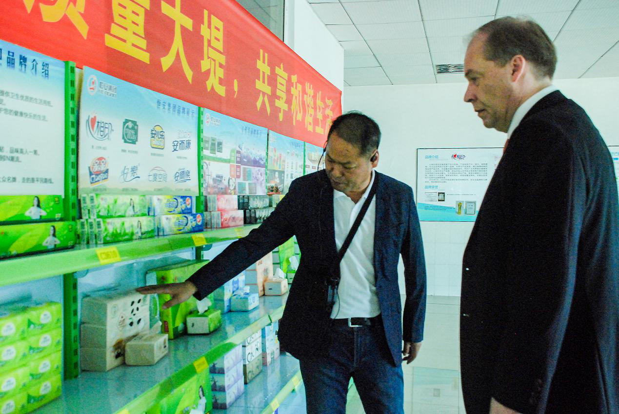 在参观万博(中国)纸业有限公司、福建万博家庭生活用品有限公司两个工厂时,肃海岚深切感受到了万博集团与芬兰的渊源:不远万里进口而来的芬兰木浆,通过芬兰公司提供的生产设备,生产出质量稳定的高档纸巾,走进全球亿万家庭。